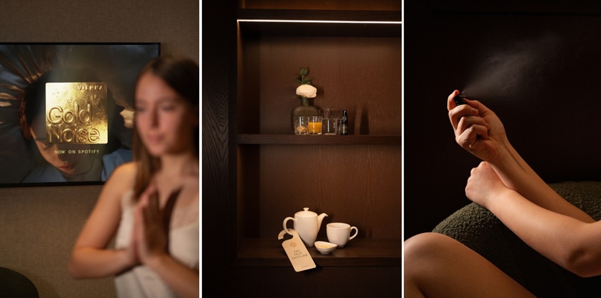 Das Package ist für jede Raumkategorie ergänzend buchbar und umfasst unter anderem das „Gold Noise“-Sounderlebnis, ein Deep-Sleep-Aromaset, ein entspannendes Abendgetränk, einen Wake-Up-Shot am Morgen sowie eine kuratierte Anleitung für Atemübungen, Meditation und Stretching.